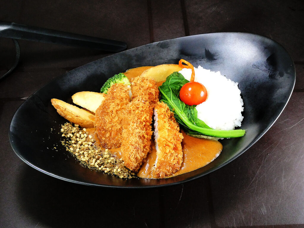 自家製カレーをソースにした那須鶏とポテトのピザです。
