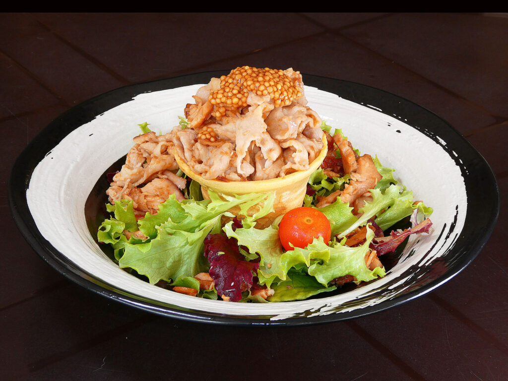 ブランドネギ「白美人ねぎ」とヤシオマスをのせました。ほのかに味噌の風味。